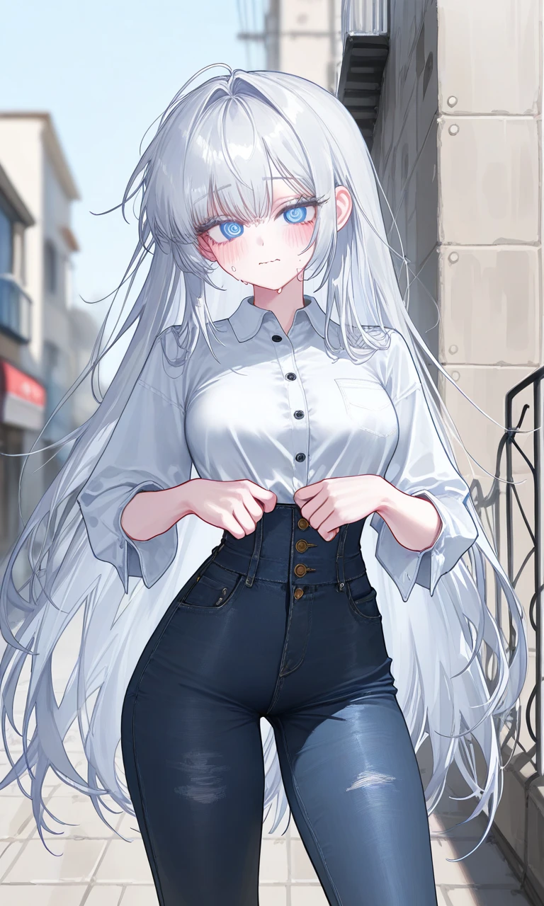 그녀의 손은 꼬물거리다가 허리춤에서 꽉 주먹을 쥐며 말했다.