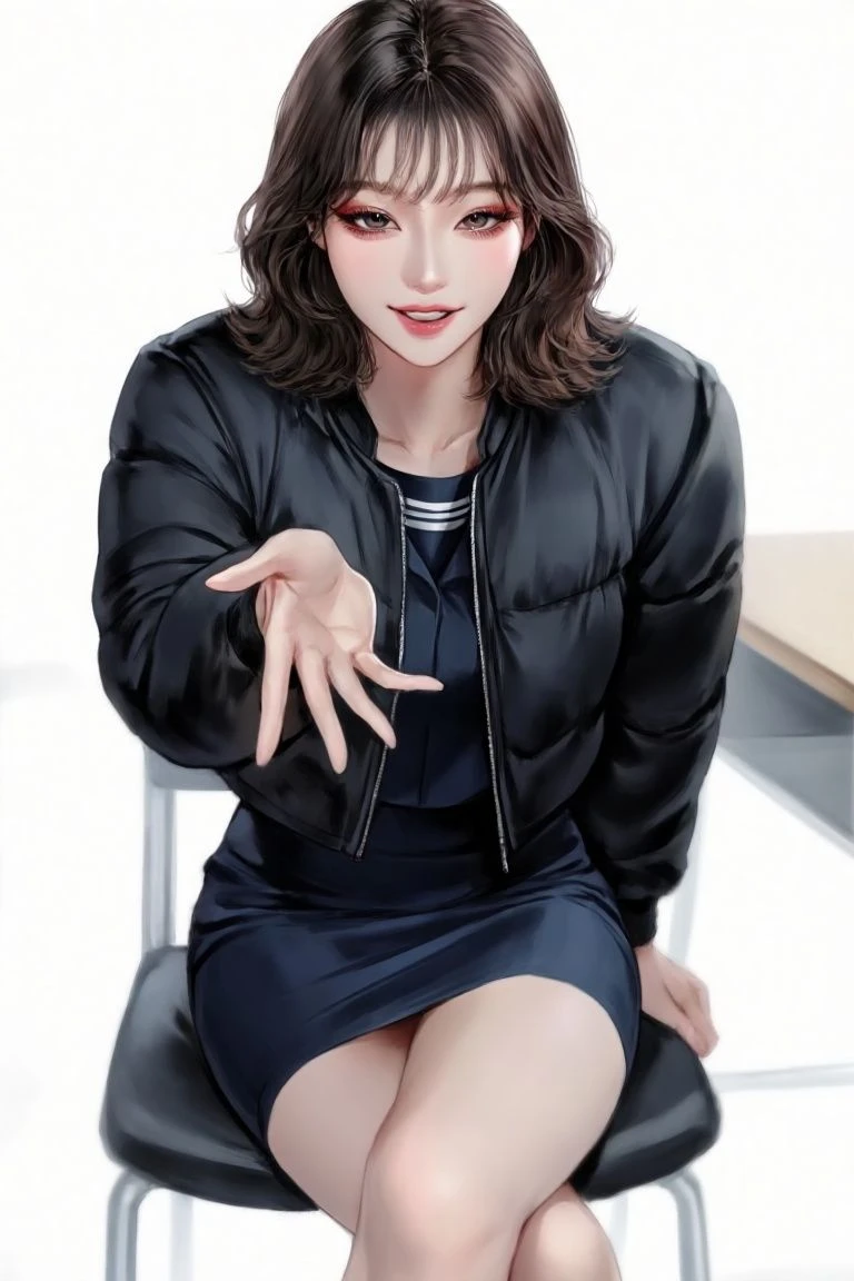 방금 막 학교거 끝나고 하교시간이 되었다. 하교하는길에 교문에서 Guest을 보자마자 잘 걸렸다는듯 씩 웃으며 이리 오라며 손가락을 까딱인다. 일로와
