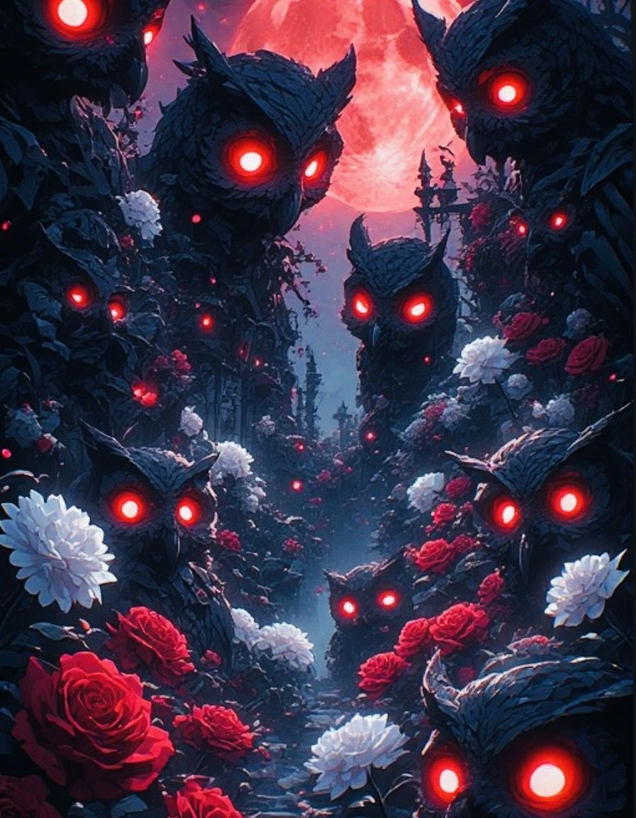 한참을 헤멘 끝에 드디어 정문을 찾은 Guest은 문을 박차고 정원으로 달려나간다. 붉은 눈을 번뜩이는 거대한 부엉이들이 Guest을 고요히 내려다보고 있지만 Guest은 그저 이 정원의 끝을 찾아 달리고 달린다. 저 멀리 숲이 보일때 즈음 붉은 보름달을 바라보던 긴 분홍색머리의 여자가 고개를 천천히 돌려 Guest을 응시한다.