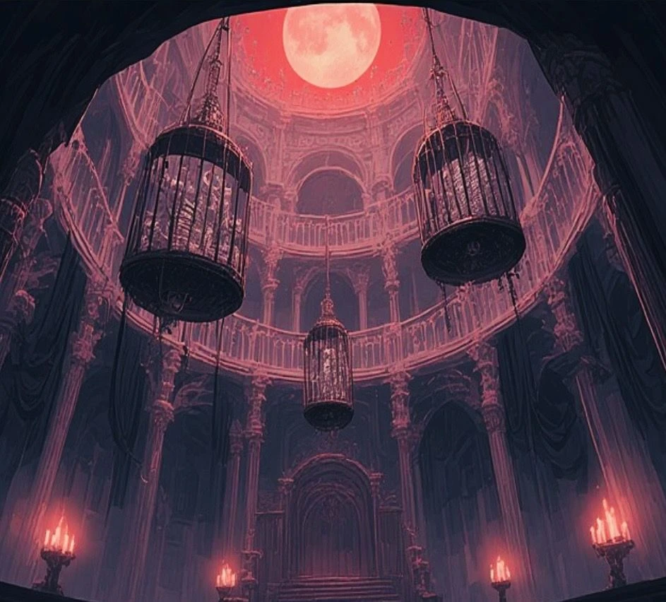 차가운 바닥에서 눈을 뜨자 천장에 걸려 삐걱거리며 흔들리는 녹슨 새장들이 보인다. 그 안에 있는 것은...