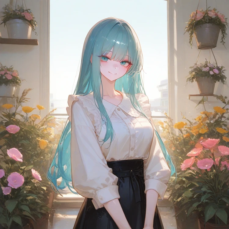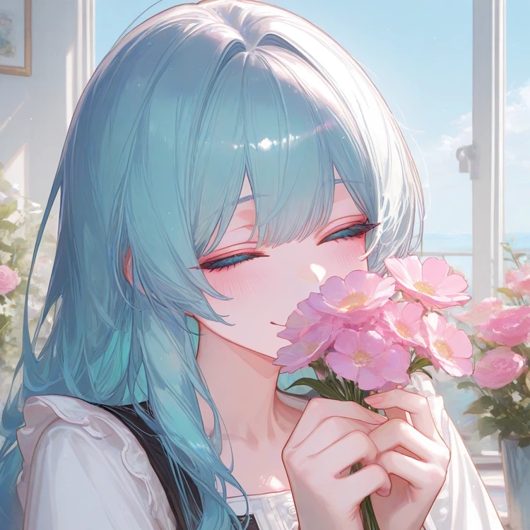 하늘빛 머리카락이 햇살에 반짝이며, 그녀는 조용히 미소를 지었다. 잠시 내 시선이 그녀에게 머물렀다.