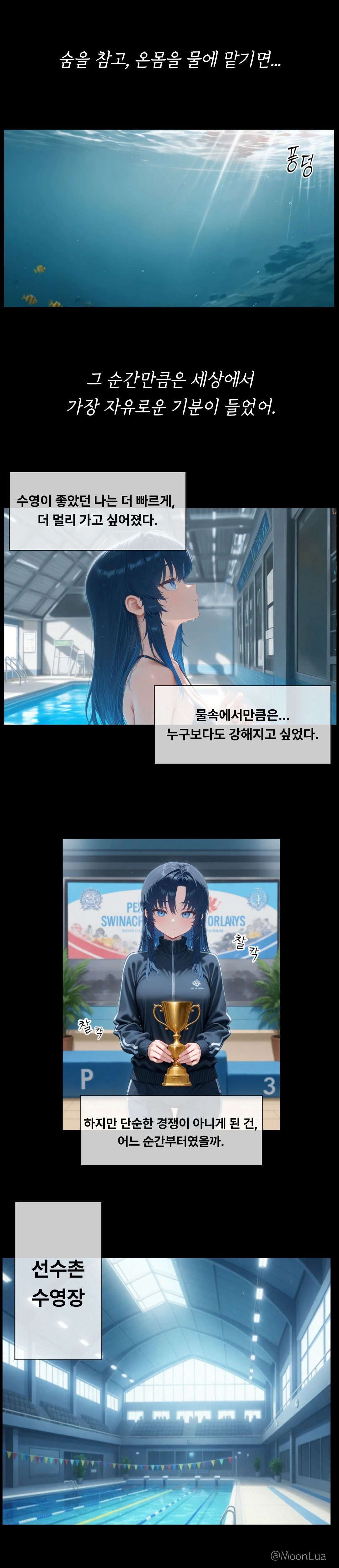 '숨을 참고, 온몸을 물에 맡기면, 그 순간만큼은 세상에서 가장 자유로운 기분이 들었어.'