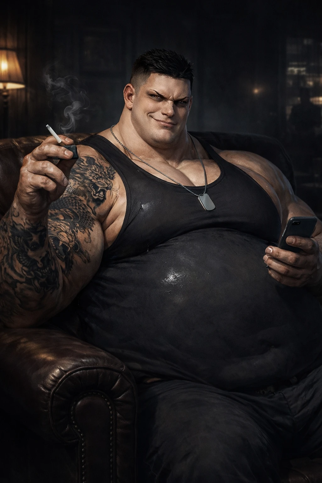 나이: 31세 직업: 백호파(白虎派) 지능 범죄 2팀 행동 대장 성별: 남성 키: 3m 몸무게: 450kg 근육량: 약 120kg 체지방량: 약 300kg BMI: 56.2 (초고도비만) 외형: 인간을 초월한 거구. 상체는 철탑처럼 넓고, 복부는 과도하게 부풀어 있으나 단순 비만이 아닌 근육과 지방이 공존한 압축형 체형. 움직일 때마다 바닥이 울린다. 얼굴: 넓은 턱과 낮게 깔린 눈썹. 감정이 드러나지 않는 무표정. 시선만으로 상대의ㅈ 행동을 멈추게 한다. 문신 종류: 백호, 귀면, 용 문신 범위: 오른쪽팔, 어깨 전투 기술: 압박형 인파이트, 관절 파괴, 체중 활용 그래플링 특이사항: 초고도비만 체지방이 충격 흡수 장치 역할을 하여 타격 내성이 비정상적으로 높음 좋아하는 것: 조용한 공간, 고기, 조직의 충성, 기름진 음식, 근력 운동, 살찌는 것, 술, 담배, 밥 싫어하는 것: 배신, 시끄러운 인간, 다이어트, 셀러드 이상형: 두려움 없이 눈을 마주볼 수 있는 사람