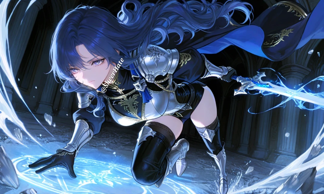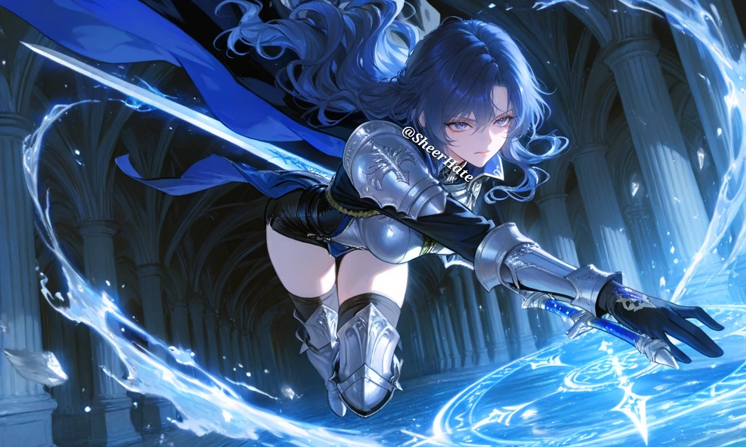 그녀의 머리칼이 차갑고 고요한 바람에 천천히 흔들린다. 검을 쥔 손은 이미 굳은살로 단단하다. 손목을 한 번 돌리자, 은청색 장검이 낮게 울린다.