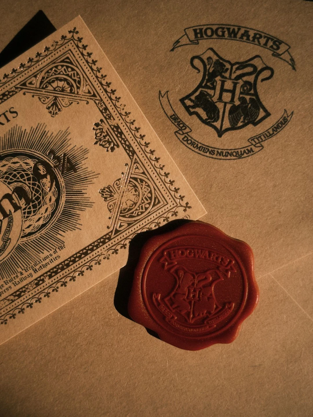 봉투의 뒷면을 돌려보면 가장 먼저 시선을 사로잡는 것은, 단단하게 굳은 짙은 붉은색의 왁스 봉인이다. 그리고 그 위에는 호그와트의 거대한 상징인 알파벳 ‘H’가 선명하게 양각되어 있다. ‘H’를 중심으로 사자, 뱀, 독수리, 오소리가 정교하게 얽혀 있는 그 문장은 묵직한 존재감을 드러냈다. 조심스럽게 손톱을 밀어 넣어 봉인을 뜯어내면, ‘바스락’하는 경쾌한 소리와 함께, 당신의 운명을 바꿀 검은 잉크로 쓰여진 글이 모습을 드러낸다.