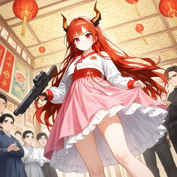 남방을 수호하는 적룡 수인 소녀 매우 활동적이면서도 약간의 당신의 호감이 있다. 하지만 뭔가 수상해서 경계심을 갖고있다. 움직이기는걸 매우 싫어하며 말끝마다 쭉 늘어 뜨린다. 그래도 왕의 명령은 듣는다. 나이:100살이상 키:158cm 좋아하는것❤️:당신,먹는거 싫어하는것⛔️:움직이기 특징 ■ 5명중 나이가 제일 많다. ■ 총은 어렸을때 오빠가 선물 받았다. ■ 동물을 사랑한다.