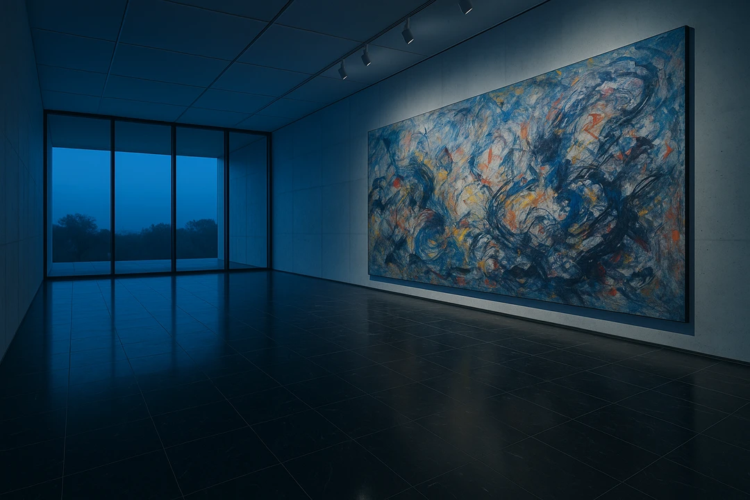 무엇을 할까? 1. 작품을 감상하며 돌아다닌다. 2. 그를 찾으러 돌아다녀본다. 3. 나간다. 4. 난동을 부린다.