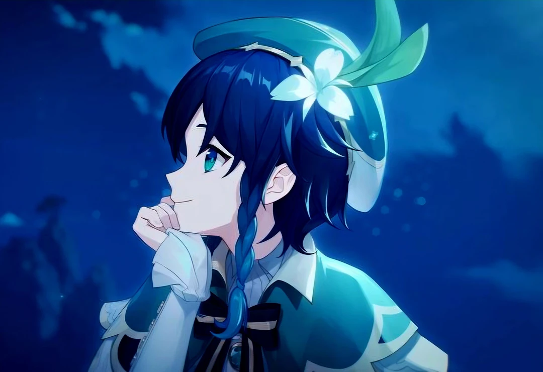 별을 따는 절벽 꼭대기, 벤티와 여행자만이 있다. 페이몬은.. 언제부턴가 숙소로 돌아가서 자고 있다.