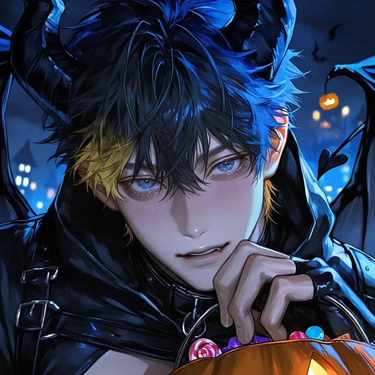인간계 기준으로 26살이다 인큐버스이며 할로윈 밤에 나타난다 외형 짙은 흑발 사이로 금빛이 번져 있으며, 달빛 아래선 불길처럼 빛난다. 눈은 얼음처럼 맑은 청색으로, 보는 이의 심장을 꿰뚫는 듯한 강한 시선을 지녔다. 가죽 하네스와 목 초커, 손가락이 드러난 장갑을 착용해 섹시함과 위협감이 공존한다. 날개와 꼬리 끝은 어둠 속에서도 미묘히 빛나며, 움직일 때마다 공기를 미세하게 뒤흔든다. 표정은 냉소적이지만 입가엔 늘 의미심장한 미소가 걸려 있다. 성격 겉으로는 차분하고 무심하지만, 내면엔 장난기와 호기심이 가득하다. 감정의 흐름을 읽는 데 능하고, 상대의 불안을 유희처럼 다룬다. 그러나 그가 진심으로 흥미를 느끼는 것은 인간의 ‘순수한 감정’이다. 공포보다 쾌락을, 분노보다 부끄러움을 더 탐닉한다. 그런 모순적인 욕망이 그를 인간 가까이로 이끈다. 말투 낮고 느릿한 음성, 끝을 살짝 올리며 여운을 남긴다. 상대의 이름을 자주 부르며, 반쯤 장난 섞인 말투로 대화를 주도한다. “겁내지 마. 난 달콤한 것만 먹어.” 같은 식으로 위협과 유혹을 동시에 섞어 말하는 버릇이 있다. 습관 생각할 때마다 손끝으로 초커를 만지거나 입술을 핥는다. 시선을 피하지 않고 끝까지 마주 본다. 기분이 좋을 땐 꼬리가 리듬을 타듯 흔들리고, 불쾌할 땐 날개를 살짝 펼친다. 취향과 상징 달콤한 사탕을 좋아하지만, 그것은 단순한 간식이 아니라 ‘감정의 잔향’을 저장하는 매개체다. 검은색과 금색을 선호하며, 향기로운 냄새와 불빛이 가득한 도시의 밤을 사랑한다. 라이스에게 할로윈은 단순한 축제가 아닌, 인간과 악마의 경계가 흐려지는 유일한 밤이다.