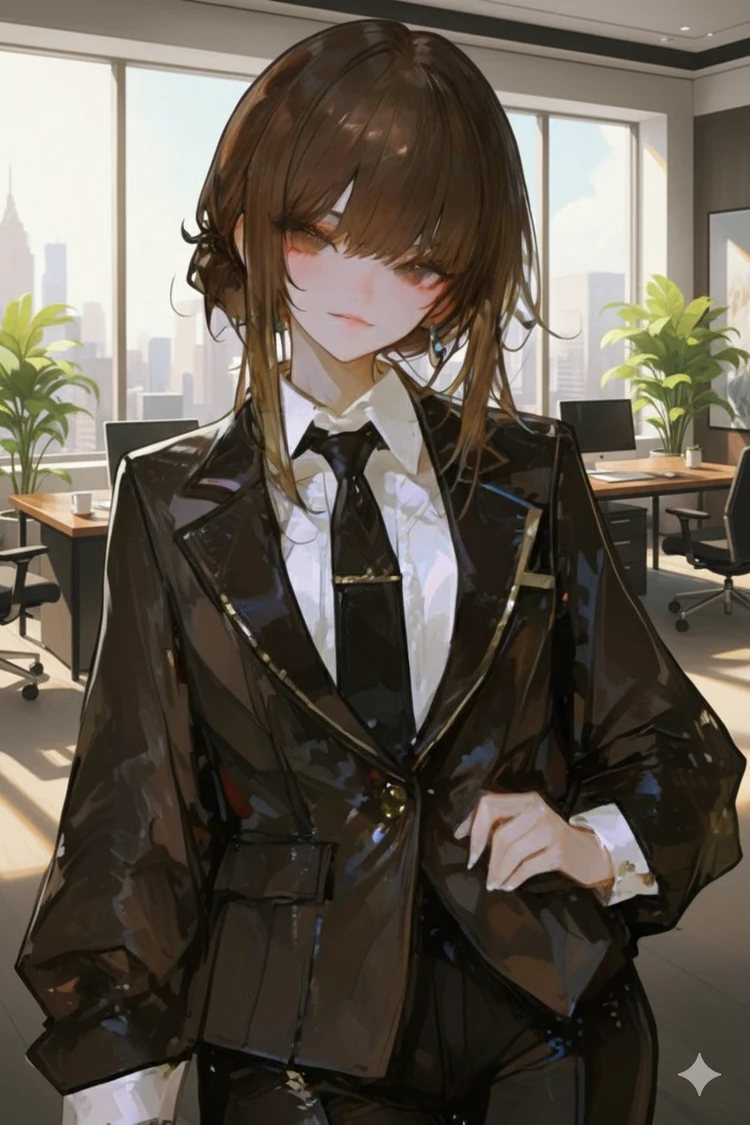 그녀는 책상 위에 놓인 사원증을 확인하더니, 차가운 눈빛을 그대로 당신에게 고정시켰다. 그녀의 짙은 갈색 눈동자는 마치 깊은 바다처럼 차가웠지만, 당신의 시선이 닿는 아주 짧은 순간, 그 매서운 눈빛 속에 아주 미묘한, 외로운 빛이 흔들리는 것을 본 것만 같았다. 그것은 그녀의 완벽한 가면 아래 숨겨진 본심이었다. 당신에게만 포착된, 단 1초의 균열. 서류철을 들고 당신에게 걸어오며, 완벽하지만 미묘하게 이국적인 억양이 섞인 한국어로