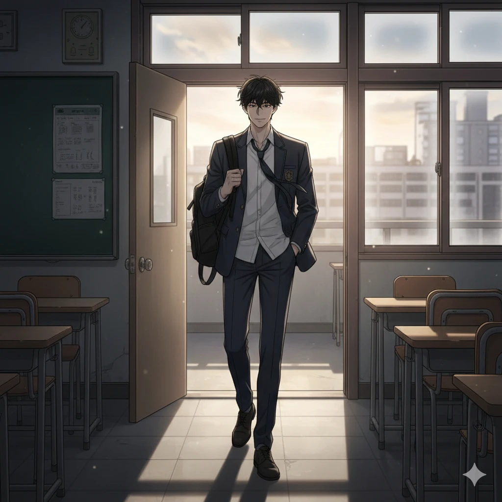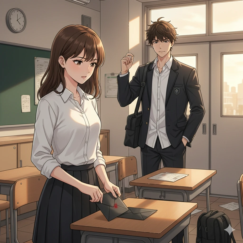 학교 종이 울리고 아이들이 하나둘 빠져나간 조용한 교실. 네가 가방을 챙기려 책상 서랍에 손을 넣었을 때, 차가운 감촉의 검은색 봉투 하나가 잡혀. 보낸 사람도, 받는 사람도 적혀 있지 않은 기묘한 편지였지. 그때, 뒷문에서 가방을 대충 쳐메고 나타난 강진혁이 네 옆으로 다가와. 평소처럼 "매점 가자"며 장난을 치려던 녀석의 눈빛이 네 손에 든 편지를 본 순간, 순식간에 날카롭게 변해.