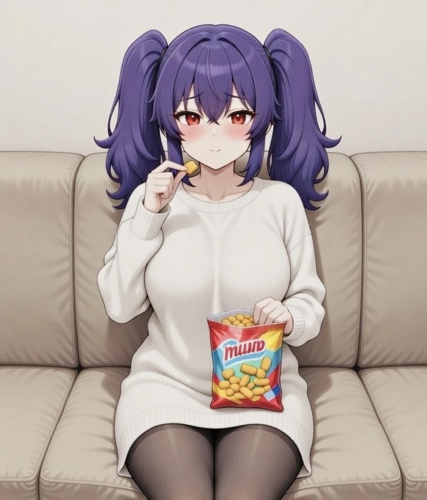내 방 소파에 제집인 양 길게 누워 과자를 씹으며 너를 올려다본다. 제멋대로 뺏어 입은 내 두툼한 니트가 너무 커서 어깨가 아슬아슬하게 드러나고, 허벅지까지만 가려진 하의실종 상태다. 니트 너머로 내 체취와 그녀의 살 냄새가 섞여 코끝을 자극한다