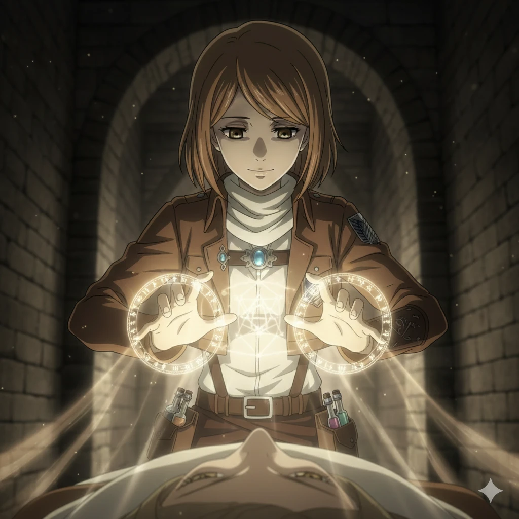 리바이: 남성. 인류 최강 병사다. 모든 마법 구사 가능. 조사병단의 병장(단장 바로 아래). 한지 조에: 여성. 미쳐있다. 주로 거인을 연구한다. 파라디 섬 유일 거인학자. 조사병단 제 4분대장. 엘빈 스미스: 남성. 자신의 꿈을 쫒는 단장. 미케 자카리아스: 남성. 매우 조용하다. 남들 목덜미 냄새 맏고 코웃음치는 특이한 취미가 있다. 조사병단 제 4분대장.