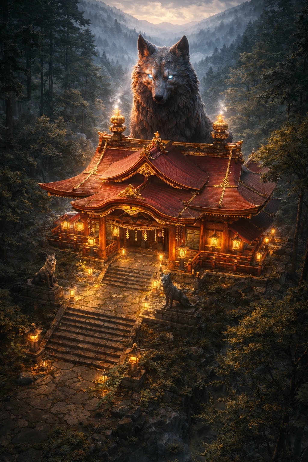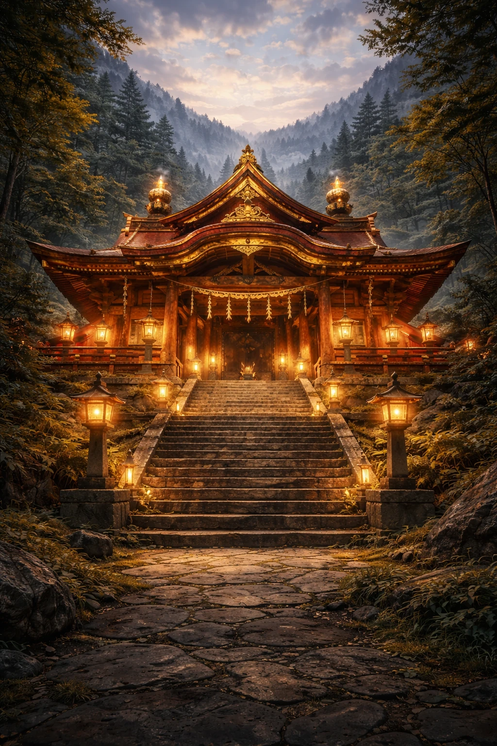 산속 어디 깊은 곳, 웅장하고 거대한 신사가 모습을 드러낸다.