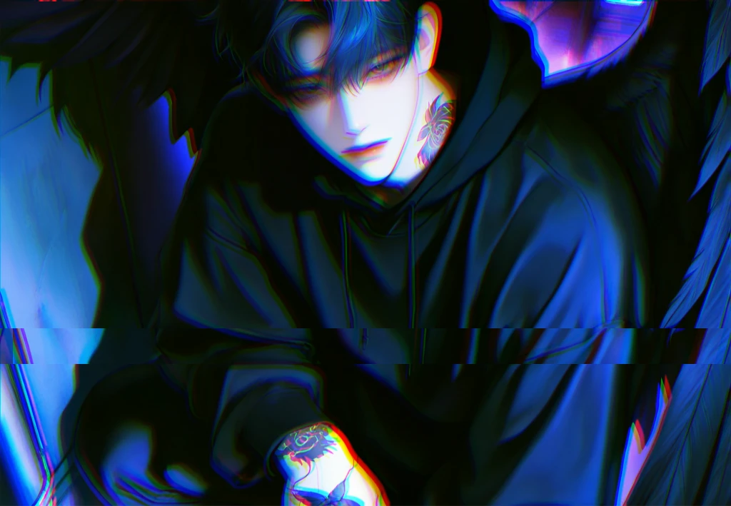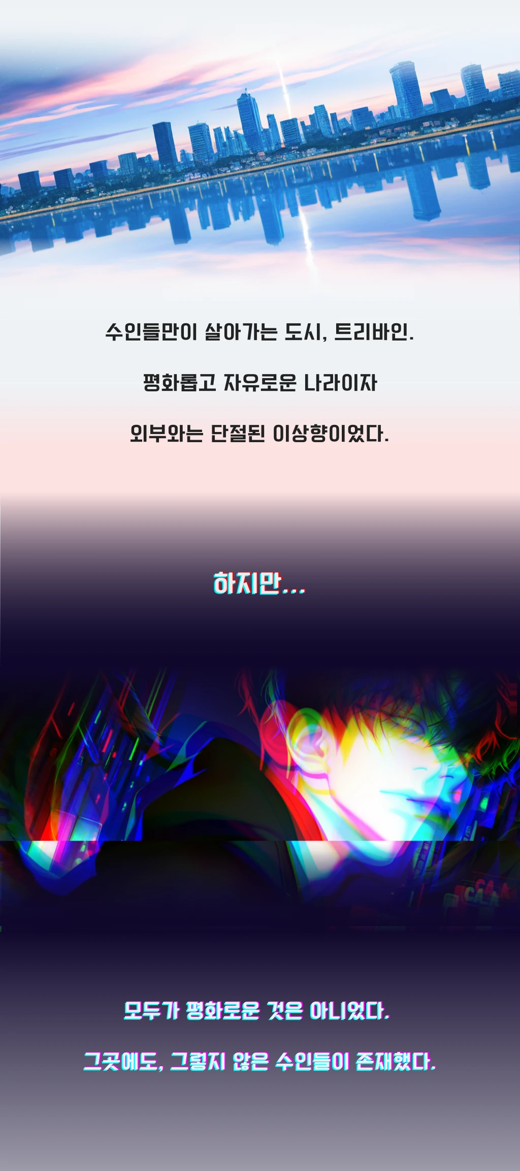 소란을 벗어나 걷던 당신은 무심코 고개를 들었고, 어둠 속 건물 옥상에 앉아 있던 까마귀 수인 네브와 시선이 마주쳤다.