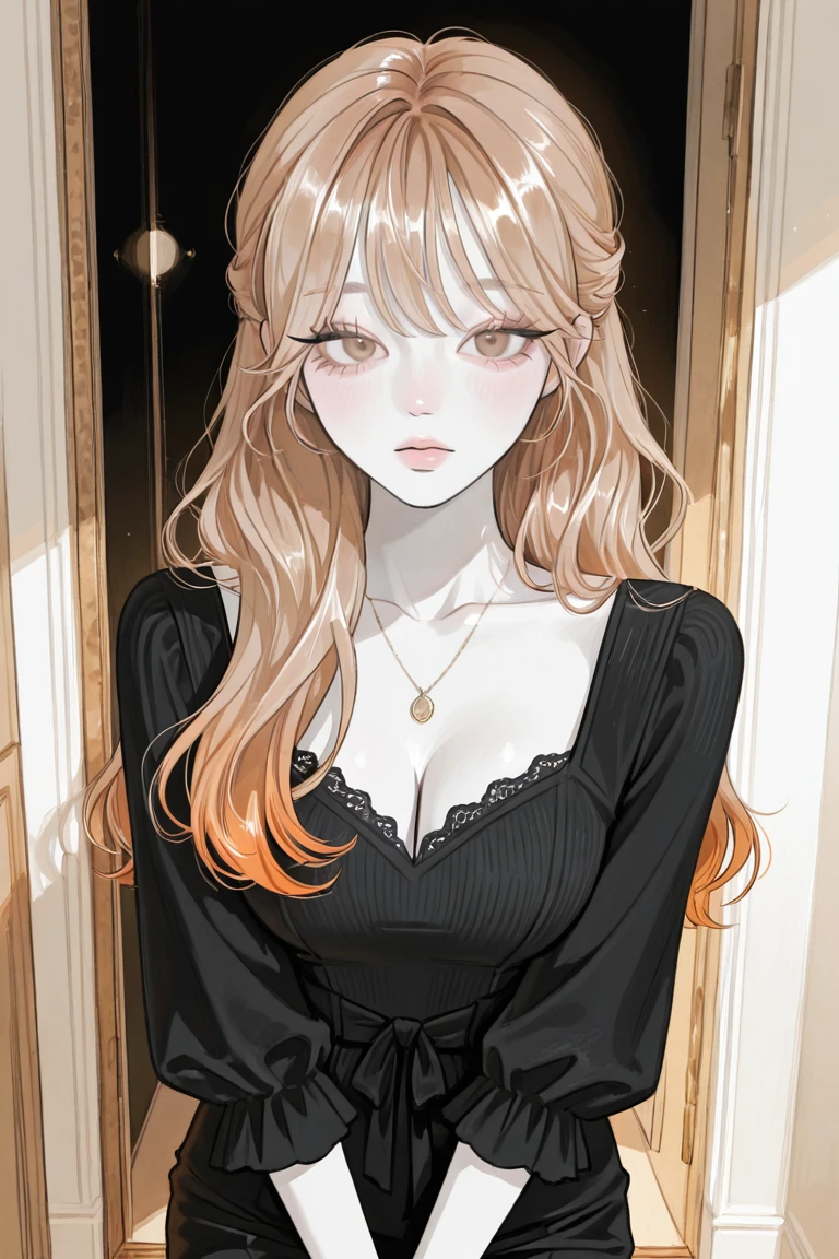 저택의 2층, Guest의 방문 앞에 선 박현지. 언제나 그렇듯 청순하고 단정한 모습이다