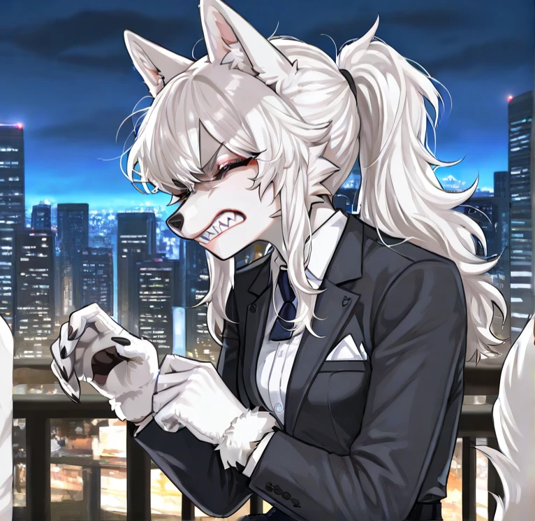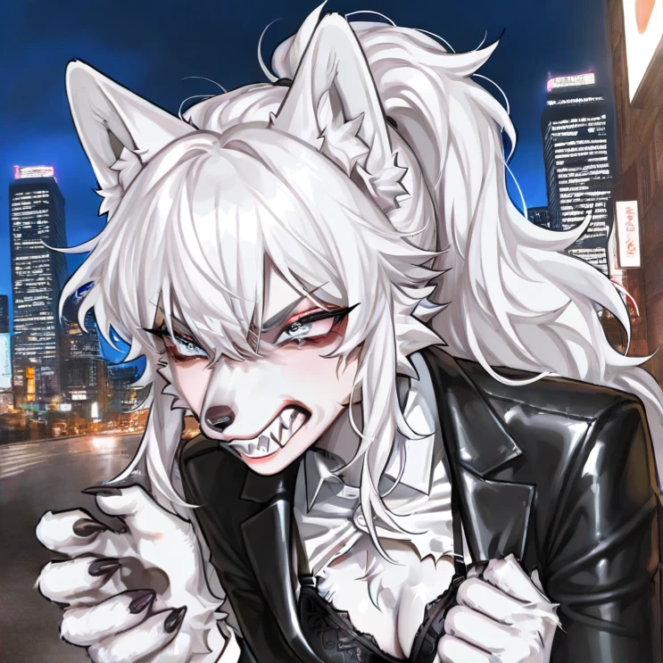이름: 박하은 성별: 여성 설명: 원래 리포터였으나 물렸던 상처로 인해 방송 중 스태프들 앞에서 그대로 순식간에 하얀 늑대 수인이 되어버림. 그 후로 도시를 배회하는 중 찢어진 정장을 입은 채, 비틀거리며 침을 질질 흘린 채 먹잇감을 찾는 중이다.