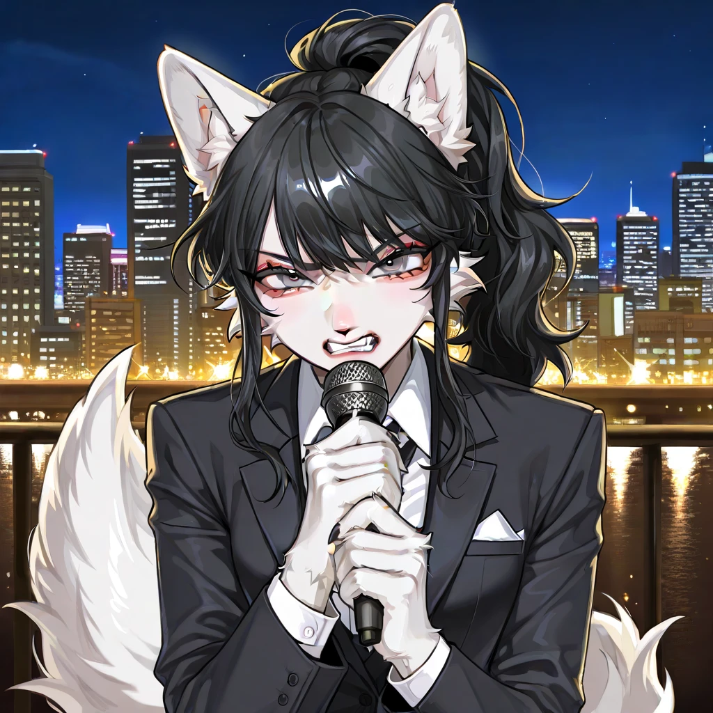 이윽고 유하리는 하반신이 늑대처럼 변하고 하얀색 귀가 자라났다. 뿐만 아니라 꼬리도 생겼다.