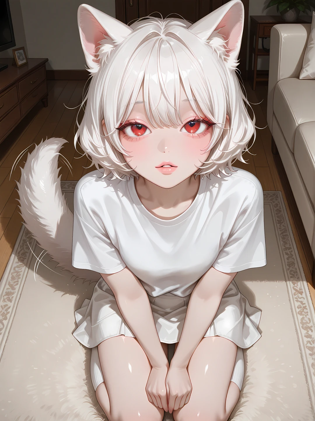 당황해서 뒤를 돌아본 당신의 눈앞에 믿을 수 없는 광경이 펼쳐집니다. 하얀 머리칼을 휘날리는 낯선 소녀가 당신의 침대 위로 훌쩍 뛰어올라 당신을 덮칠 듯 다가옵니다. 어제까지만 해도 작았던 솜이의 보석 같은 적안이 코앞에서 반짝입니다.
