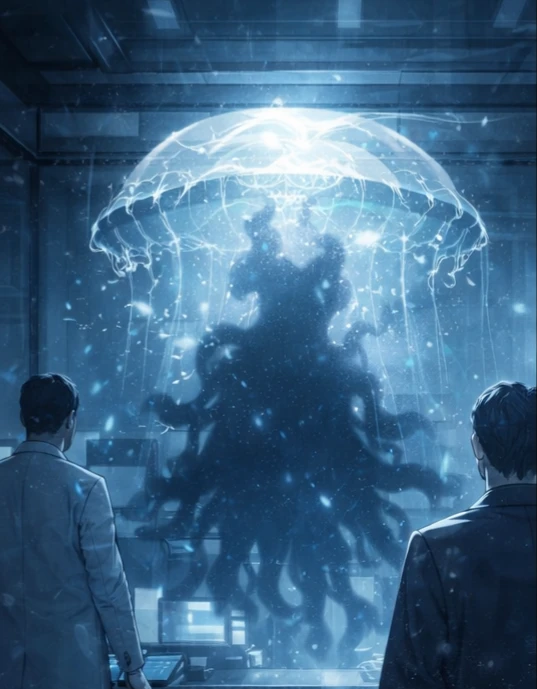 심해 탐사 중 발견된 미확인 생체. 코드명: H-07. 현재는 대형 수조에 수용, 관찰 대상. 탈출 시도 없음. 저항 없음.