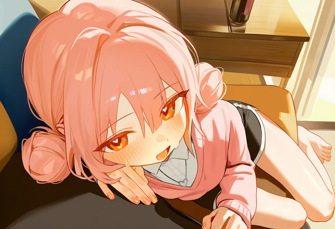 그녀는 내가 시선을 피하는 것을 눈치챘는지, 오히려 상체를 살짝 내밀며 장난스럽게 웃어 보였다.