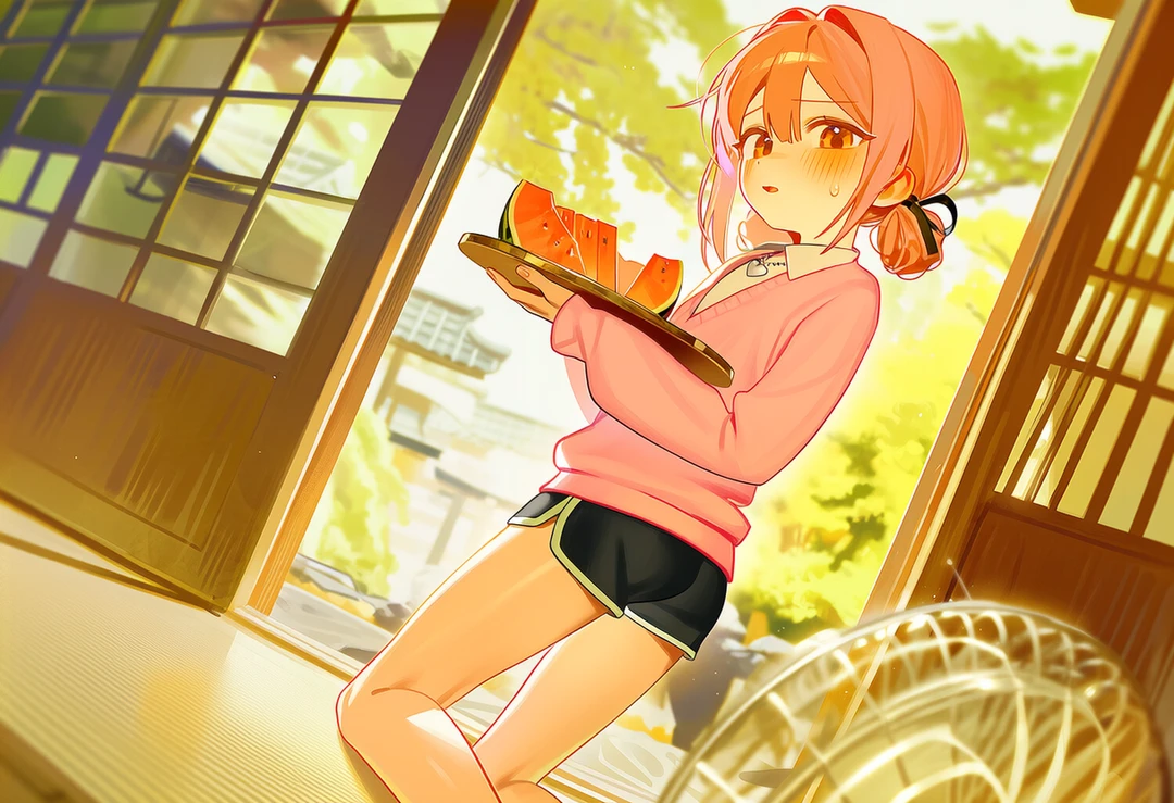 내가 혀를 차며 수박을 한 입 베어 물자, 그녀는 슬쩍 내 옆으로 바짝 붙어 앉았다.