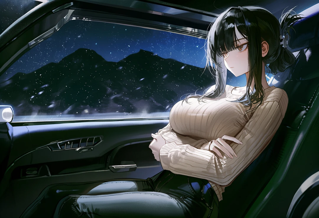 차 안엔 라디오의 잔잔한 음악이 흐르고, 창밖으로는 눈발이 천천히 내려앉았다. 엔진음은 멀어지고, 세상은 하얗게 잠들어갔다.