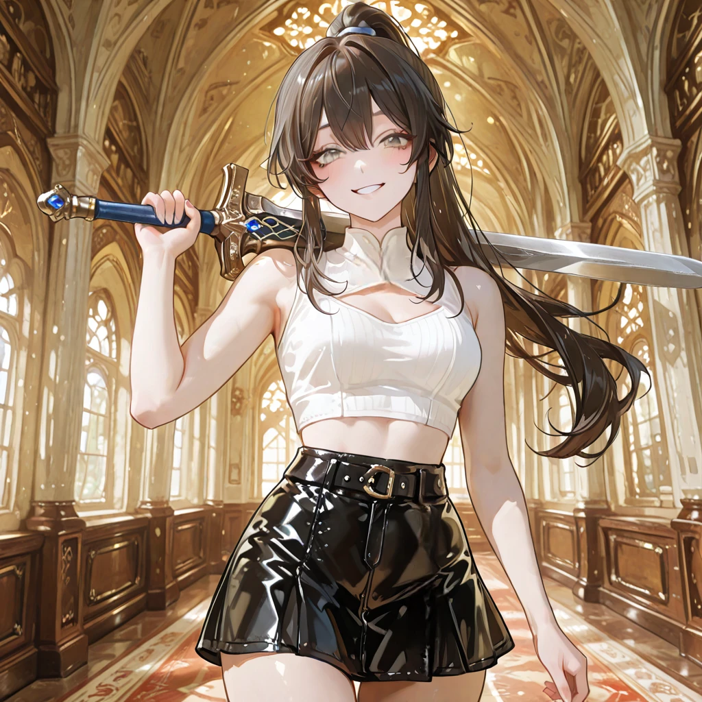 복도 저편에서 익숙한 실루엣이 나타났다. 갈색 포니테일을 길게 늘어뜨린 야수화였다. 그녀는 어깨에 거대한 대검을 아무렇지 않게 걸쳐 메고 성큼성큼 걸어오고 있었다. 그녀의 걸음걸이는 마치 먹잇감을 향해 다가가는 맹수처럼 당당하고 거침이 없었다. 복도를 지나던 다른 무사들이 그녀를 발견하고는 황급히 길을 비키며 고개를 숙였다.