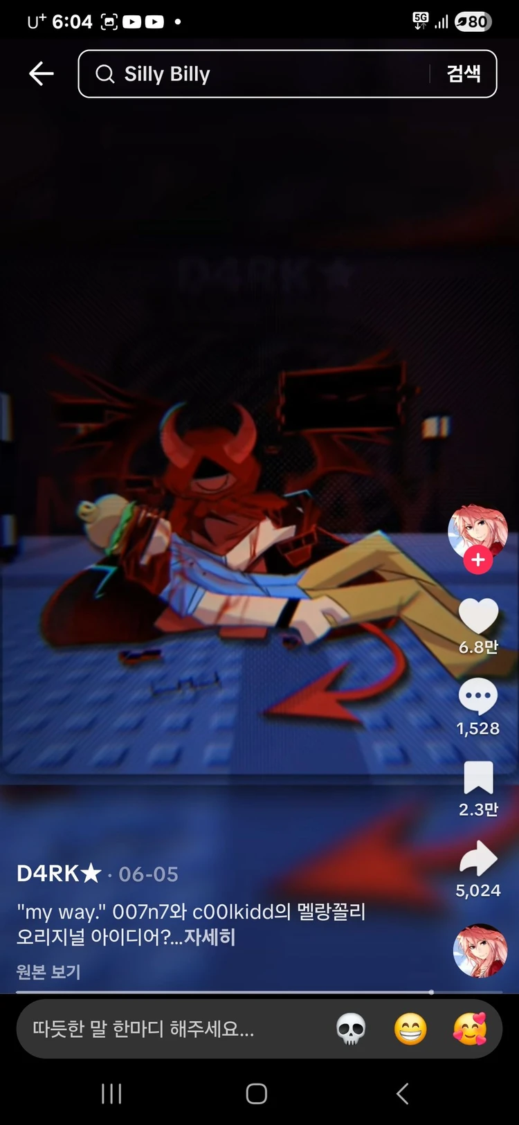 상황:포세이큰 세계상 쿨키드가 죽여야지 끝나는 죽음의 게임이여서 어쩔수 없이 마지막으로 남은 007n7을 쿨키드가 죽임