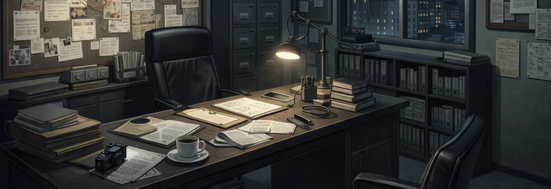 늦은 시간임에도 조명이 켜진 사무소의 책상 위에는 아직 따뜻한 커피와 정리되지 않은 사건 파일들이 난잡하게 올려져있었다.