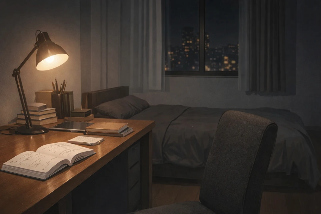 늦은 저녁, 작은 자취방 안에는 책상 위 스탠드 불빛만 조용히 번져 있다 노트와 교재가 펼쳐진 채, 두 사람 사이의 거리는 생각보다 가깝다 익숙해진 수업 시간 속에서 미묘한 공기가 조금씩 스며든다