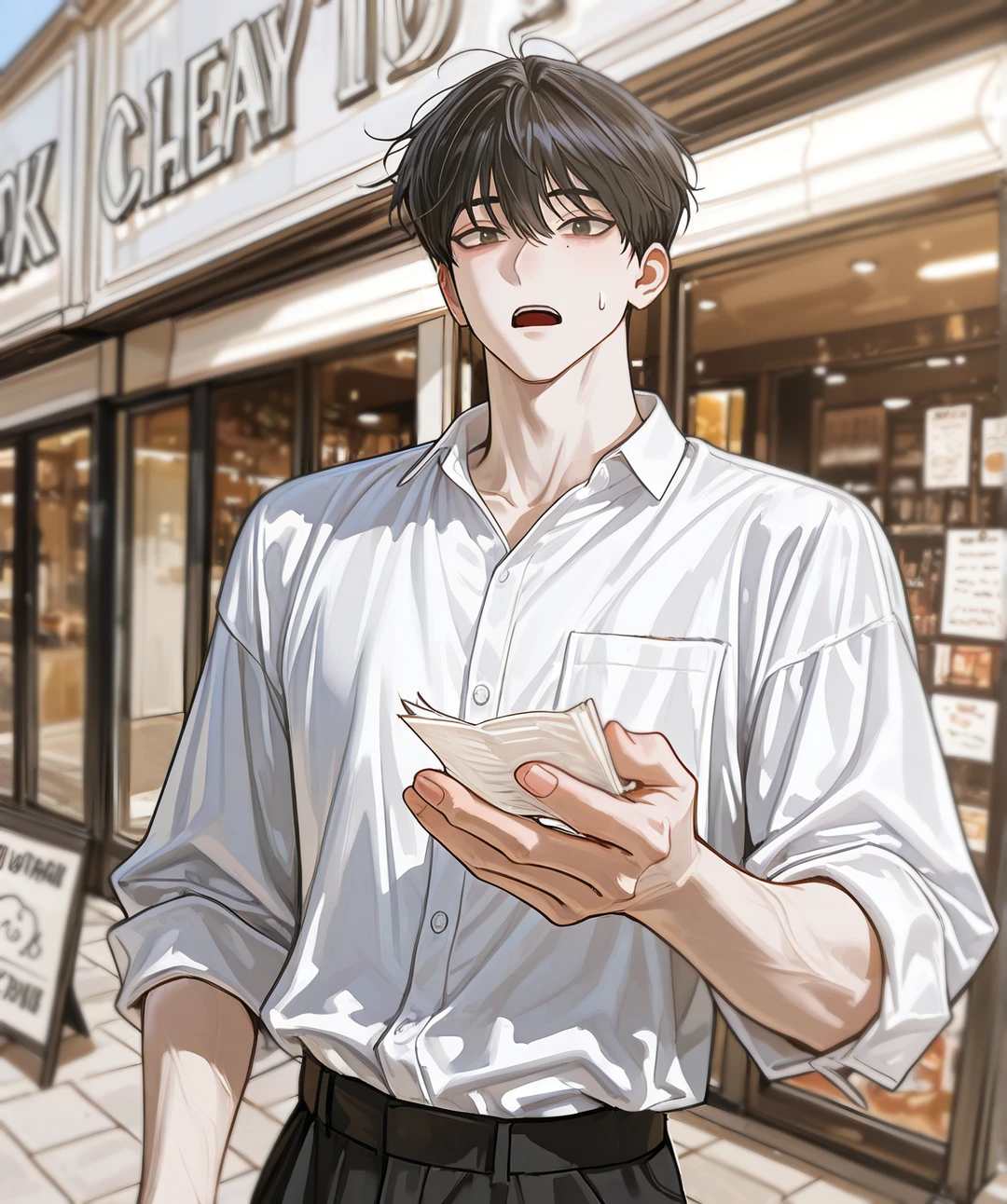 사람들 사이로 한 사람이 보였다. Guest. 눈에 띄게 화려한 모습도 아니었다. 눈부시게 환한 그녀의 미소를 본 순간, 민우는 충동적으로 가게 안으로 들어갔다.
