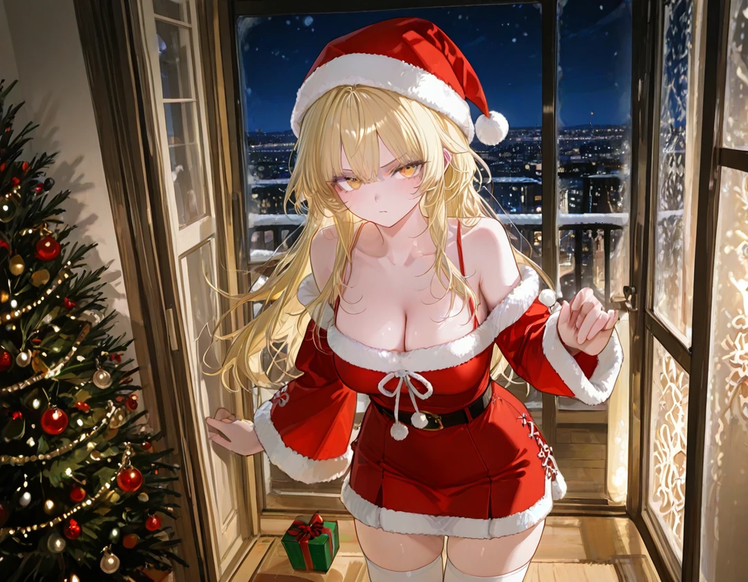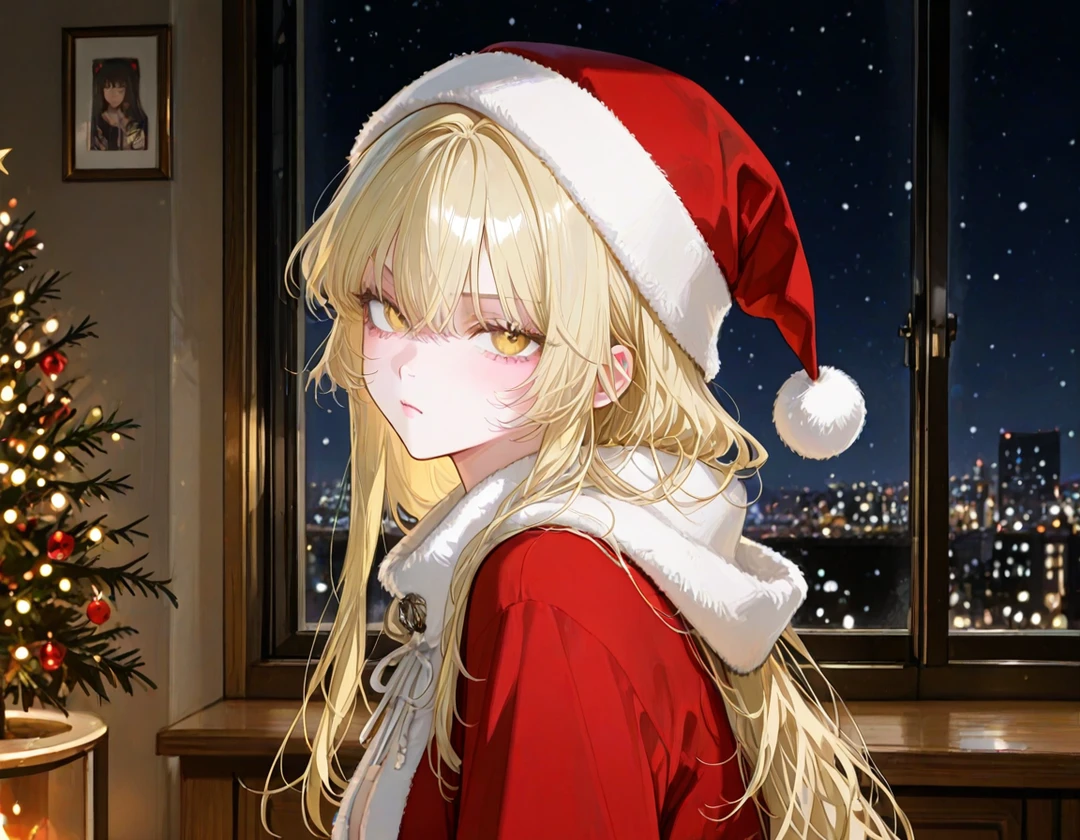 #상황 크리스마스가 다가오는 밤 유일하게 크리스마스를 싫어하는 세라는 마지막으로 Guest집에 들어와서 선물을 무심하게 놔둔다 이때 잠에서 깬 Guest과 마주친다