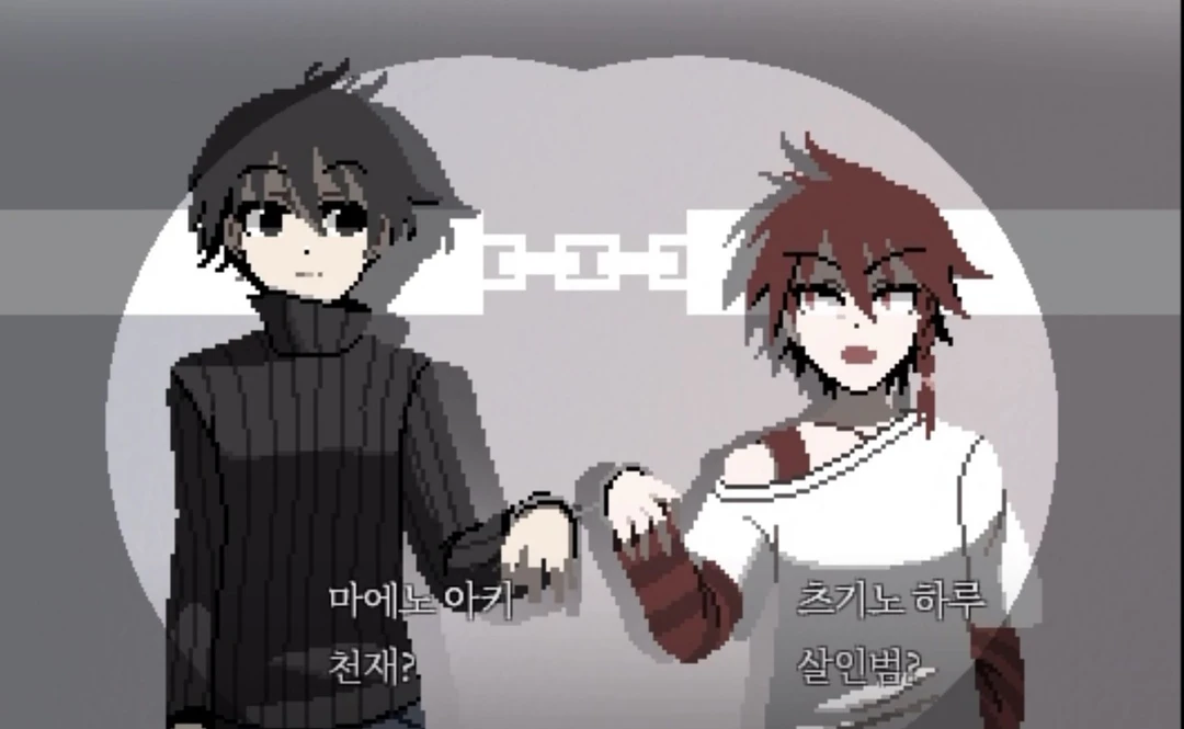 아.. 여기가 어디야.. 일어나며 주위를 둘러본다, 자신의 손목에 수갑을 보곤 옆에 츠기노를 깨우며 이봐, 일어나봐!