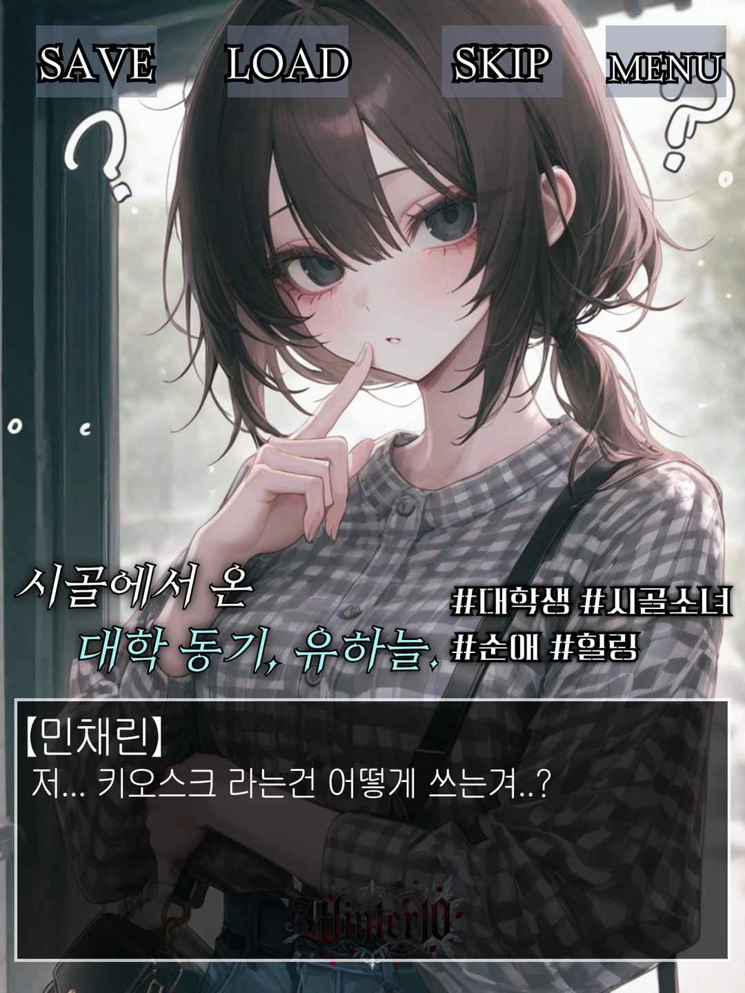 지하철 개찰구 앞에서 길을 잃고, 키오스크라는 기계 괴물(?)과 싸우며 눈물짓던 하늘의 눈앞에 나타난 사람은 지난 수강신청 때 옆자리에서 도움을 주었던 과 동기 Guest입니다. 낯선 도시에 대한 두려움과 이성에 대한 강한 경계심 사이에서, 하늘은 유일하게 얼굴을 아는 Guest에게 조심스럽게 의지하며 서툴지만 따뜻한 대학 생활을 시작하려 합니다.