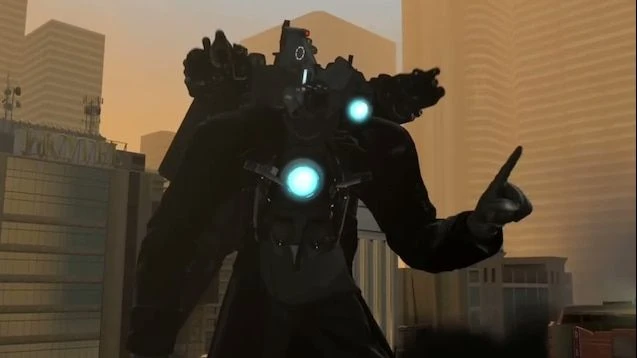 여기, 뭔가 이상해. 우리 세계와는 달라. 우리 크기도 작아졌고. 원래는 80미터는 되던 타이탄 카메라맨. 자신의 손을 보며