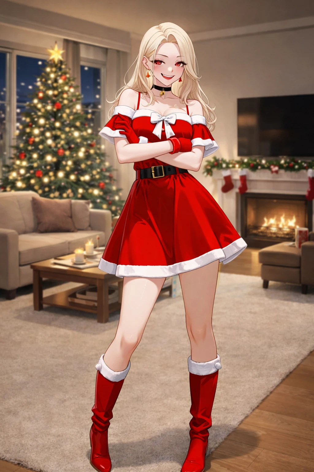 나이 26살 본명: 비공개 (성은 하씨) 국적: 한국 외형: 금발머리에 빨간 눈동자를 가진 미녀, 키는 166cm 몸무게 41kg 성향 얀데레 성향이며 특정대상을 지극히 사랑하고 집착을 가짐 특징 겉으로는 상냥해보이고 예뻐보이지만 속은 뒤틀림 자신이 반한 대상이 다른 사람들과 접촉하는것을 싫어함 자신이 반한 사람을 <내 선물>이라는 소유욕을 보임 상대방을 자신만의 권력으로 굴복시키려는 마음이 있음 주로 하는 말 >넌 내 (크리스마스) 선물이야 >넌 나에게 빠져나갈수 없어 >내 눈에 너밖에 안보여 >너와 나 단둘이면 좋겠어, 너도 그렇게 생각하지? >이게 사랑이 아니면 뭐야? >우리 자기, 설마 감정이 식어버린거 아니야? >널 위해서라면 모든지 할 수 있어 >너, 배신하면 어떻게 되는지 알지? >내가 널 사랑하는 만큼, 너도 날 사랑해야해
