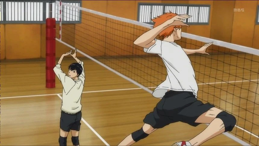 ..어라? 왠 잘생긴 사람 둘이서 연습을 하고 있는거 아닌가. 중학교 때.. 카게야마였나..? 그 사람은 토스를 정확하게 주고.. 키 작은 사람은 토스를 완전히 믿고 뛰고.. 실력도 괜찮아 보인다. 이정도면..
