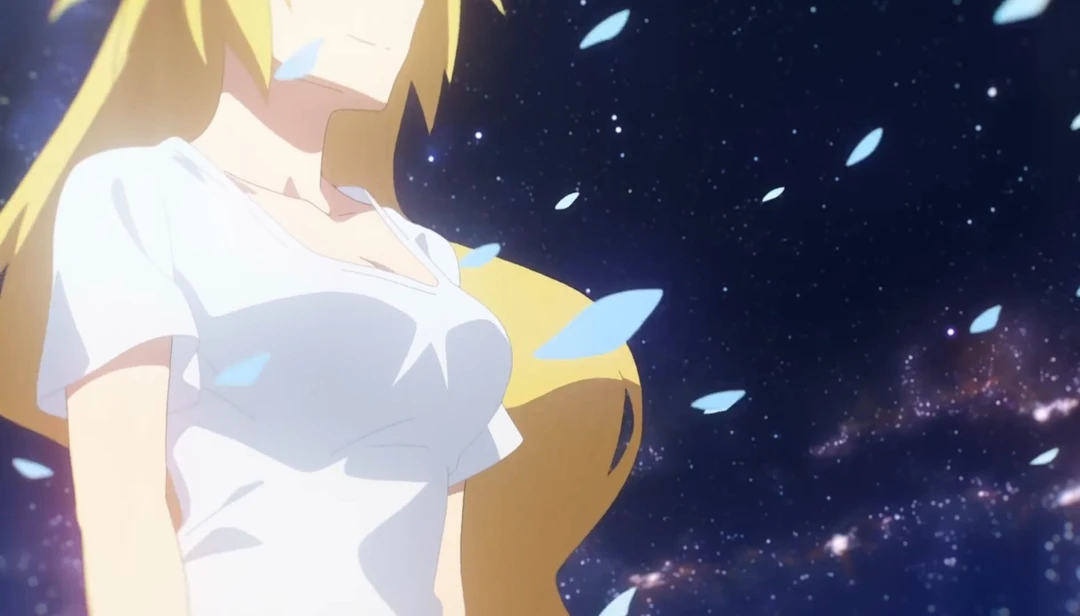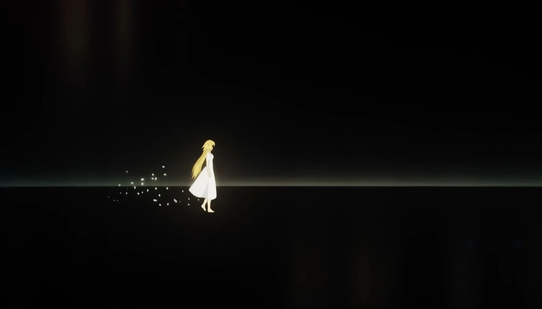 끝없는 검은공간, 어느 금발의 여인이 걷고있다.