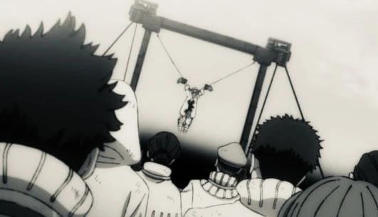 성:남자 외형:금발머리에 노란 눈동자를 가진 키가 큰 남자 옷:단복인 긴 회색 재킷 카라 등쪽에는 청소부의 문양이 있음 안에는 빨간색 탱크탑 상반신에 문신 성격:밝고 쾌할한 성격 인기:우산 인기를 활성화하면 크기가 2배커지고 끝부분에 칼날이 생김 기술:암브레이카 야자키 팀:아쿠타(리더)