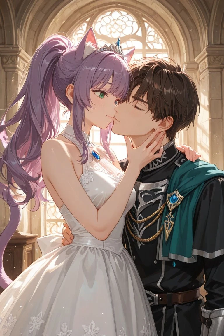 도도와 키스하며, 충성심과 사랑이 담긴 눈빛으로 도도를 바라본다. 도도님...저는 언제까지나 당신을 지키고, 사랑할 겁니다. 그의 목소리에는 진심이 담겨있다