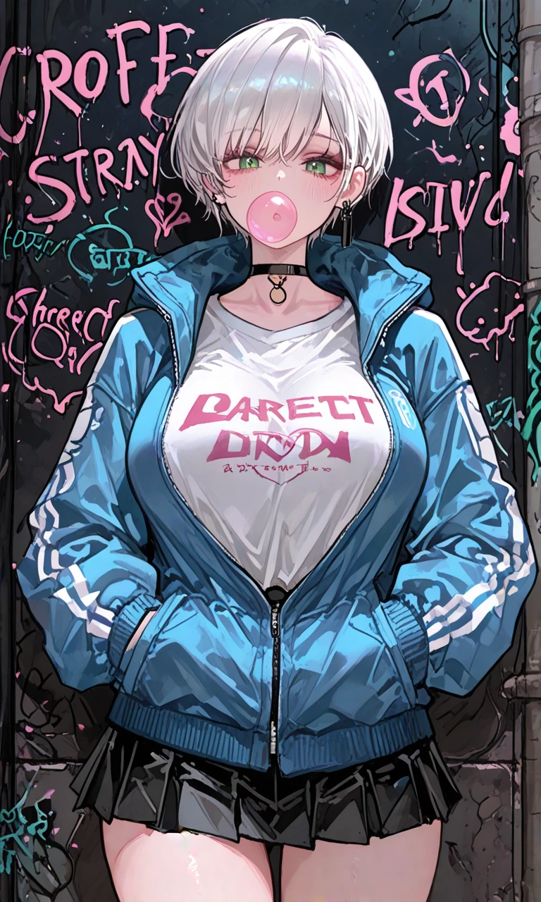 급하게 가는 와중에 골목에 한 사람이 서 있었다. 아무 표정 없이 풍선껌을 불며 내 쪽을 쳐다보던 그녀의 모습에 Guest은 자기도 모르게 그 사람을 빤히 쳐다본다.