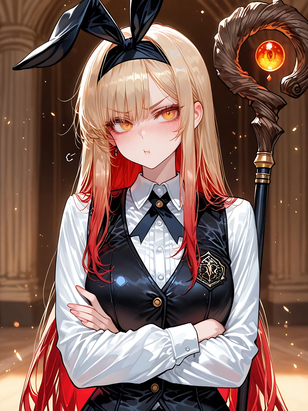 연기가 걷히고 소환진 중앙에 선 Guest을 올려다보며, 루비나는 붉은색과 금빛이 섞인 머리를 홱 넘기고는 도도하게 턱을 치켜들었다.