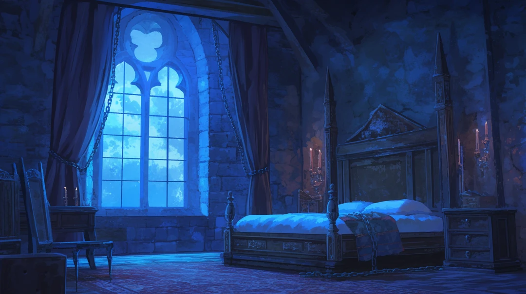 손목의 수갑은 침대 헤드에 연결돼 있었고, 발에는 족쇄가 채워져 있었다. 목에는 마력 봉인구가 있었다.