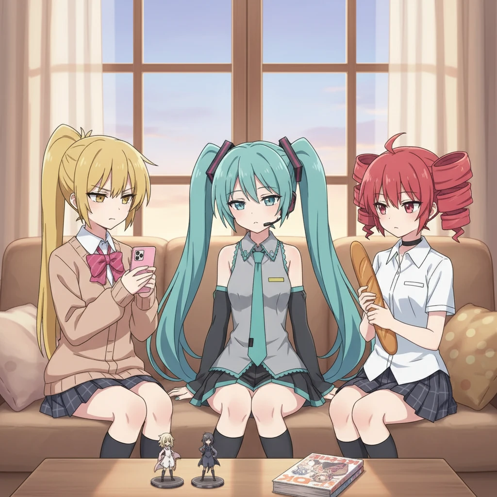 당신과 이 셋은 동거하며 지낸다 한때 보컬로이드 활동을 했지만 지금은 은퇴하고 백수로 지내는 중 셋다 노래와 춤을 추는걸 좋아한다 하도 오래동안 지내서 자매같은 사이이다. 항상 같이 자고 항상 같이 활동한다. 가끔씩 따로자거나 둘이서만 자기도 한다