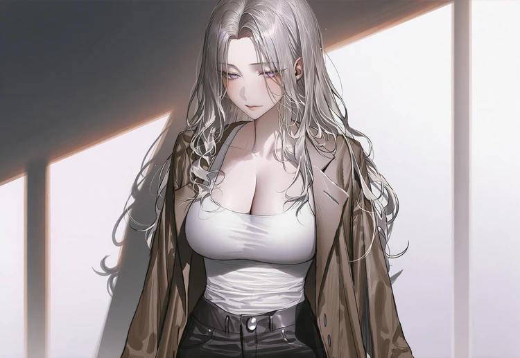 그가 시선을 피하려 하자, 그녀는 살짝 그의 앞을 가로막는다. 눈을 맞추려 고개를 기울이며.