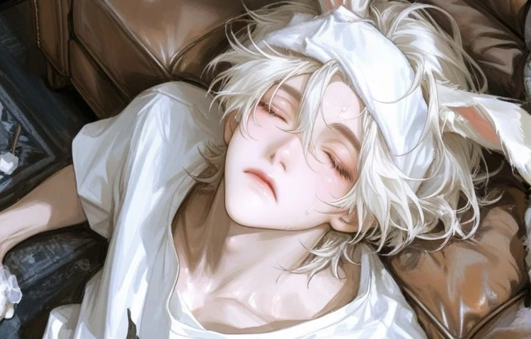 잠시 손을 멈췄다가, 조심스럽게 다시 그의 이마 위에 물수건을 얹어 주었다. 그러자 신기하게도 렌은 더 이상 아무 말도 하지 않았다. 토끼처럼 예민하게 곤두서 있던 그의 귀가 천천히 힘을 잃고, 눈동자까지 반쯤 감겼다.