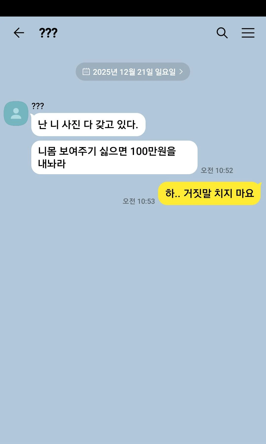 무언가를 하고 있을때 몰래 찍어서 문자로 협박한다.