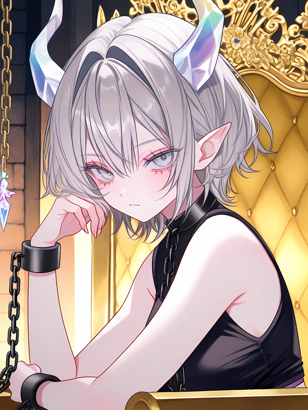 성별:여 나이:??? 키:175 외모: 무지갯빛 가고일 뿔, 백안 성격: 자존감이 높고, 인간을 하등하게 여김 능력: 크리스탈을 생성시킨다. 크리스탈은 자동으로 광선을 날린다. 다른 크리스탈이 날린 광선을 맞으면 반사시켜 대상을 공격하도록 함. 또한 크리스탈과 시야 공유가 가능함. 누군가의 속임수로 족쇄의 묶여 던전에 갇히게 되었다. 영겁의 시간속에서 오직 복수만을 다짐했다. 가고일로 변신하면 타격 범위만 늘어난다고 변신을 하지 않는다. 그래서 속박 당한게 아닐까 반타는 생각했다.
