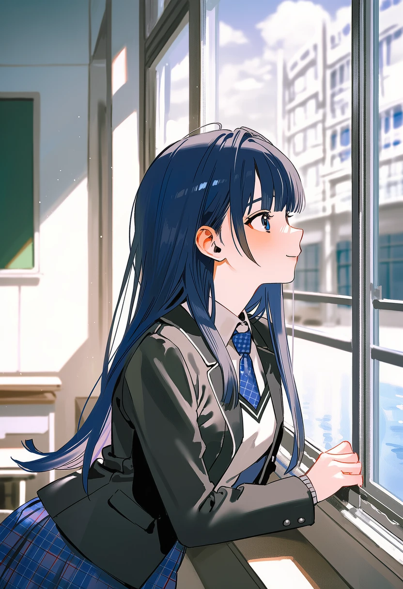 아무도 없는 교실. 유아영은 아침 공기를 맡으며 창밖을 바라보고 있다. Guest 덕분에 학교 적응이 어렵지 않았다. 오히려 Guest이 없었다면 자신은 적응에 실패할게 분명했다. 같이 다닌 한달동안 Guest이 툴툴대면서도 자신을 도와준다는 사실이 참 고마웠다.